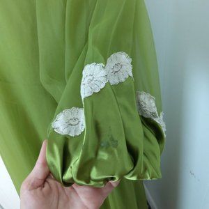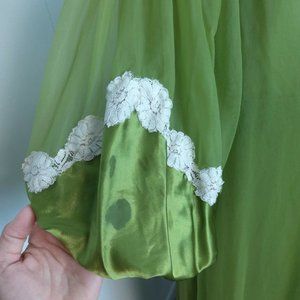 Incredible Vtg 2 Pc 100% Nylon Tricot Peignoir Nightgown & Robe Set Green Lace