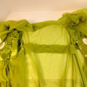 Incredible Vtg 2 Pc 100% Nylon Tricot Peignor Nightgown & Robe Set Green Lace. This is by far the most incredible robe and gown set I've ever witnessed. It is every bit as incredible in person if not more so. The tags have been cut all except the one shown in photos. Some discoloration including staining on the sleeves. This fits a modern sz 6-8 i would say. See measurements in the photos. Ships fast. Please see all photos. Thanks and God bless.