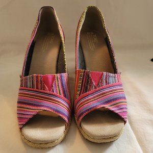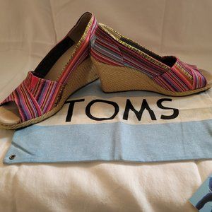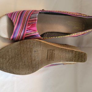 Toms canvas multi-colored pink espadrilles wedges. Super cushy foot bed! Gently used - from my own closet. Women's size 10.