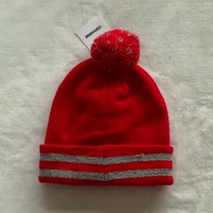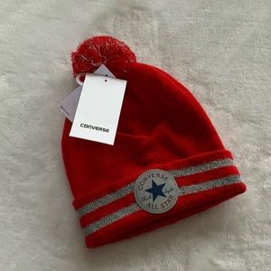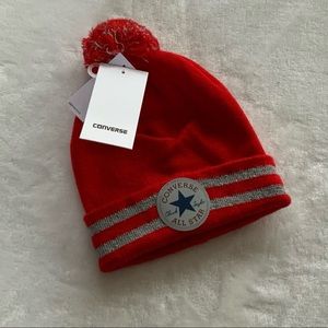 New Converse All Star Chuck Taylor Youth Red Reflective Knit Pom Pom Beanie Hat