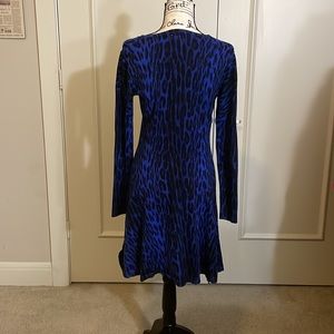 Gently worn Michael Kors Blue & Black Leopard Print Dress With Long Sleeves. In good condition. Only one little hole in the upper back. Please see picture.