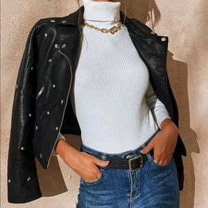 Back Star Stud Vegan Leather Jacket
