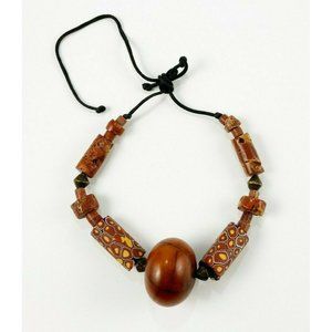 The center focal marbled bead is about 40 mm x 29 mm, rich dark brown cognac color.