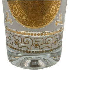 Vintage Midcentury Mayan Calendar Tumblers Gilded Frosted Set of 7 MCM Barware