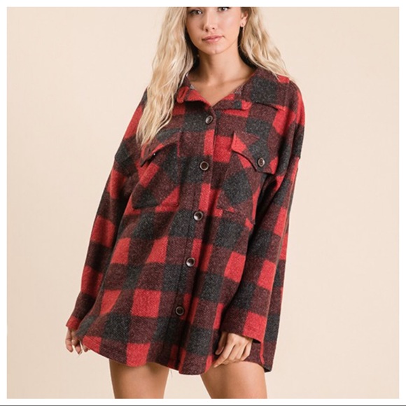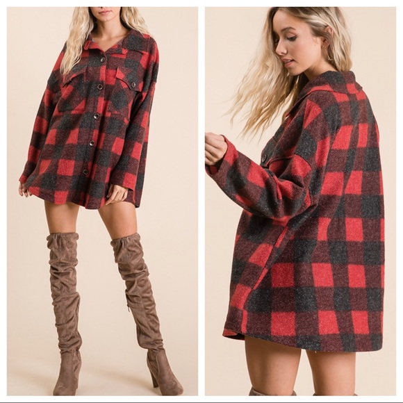 It’s All About The Buffalo Red Plaid Shacket Check Print Shirt Top Jacket