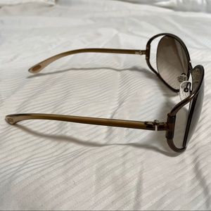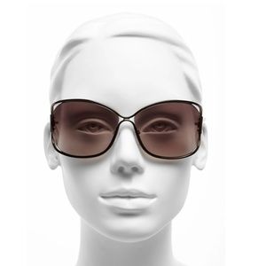 • Sleek metal-frame sunglasses are fashioned with alluring cutaway lenses and open temples.