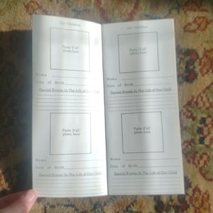 Fontanini "The Family Record Keeper", a special place for family memories from The House of Fontanini. It is an insert or booklet designed to record a family's history.