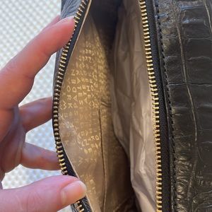 New, never carried. Still stuffed with original paper from factory. Lining is 100% polyester in Kate Spade lettering light tan color.