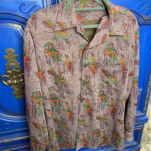 Vintage 80's Duck Hunting Printed Shirt Long Sleeve Button Down Size Large.