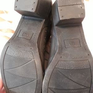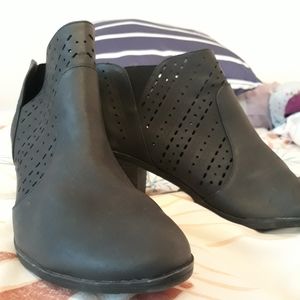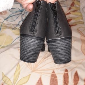 Cute booties have V shaped cuts on outer edges and a small stretch panel on inner edges for comfort. Zip up the back to help get on. Size 11. Bought them with a few scuffs from being tried on at the store. New without tags or box.