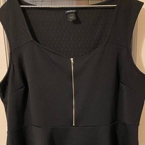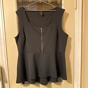 This has been one of my favorite tops from Torrid. It has been gently used, paired with a kimono in the summer, or a warm cardigan in the fall and winter. It literally goes with anything! It has a slight hi-low hem, which makes it very flattering for any body type… fitted up top and flowy at the bottom. The silver zipper also adds a nice dressy touch. Just to give you an idea of the length; I am 5’9” and it’s long enough to cover most of my bottom in the back 🙌🏻