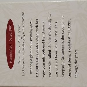 •1995... From the Collector's Series •Solo in the Spotlight... Barbie •Mattel• keepsake ornament •dated 1995 •glamour •retro• vintage• old school•