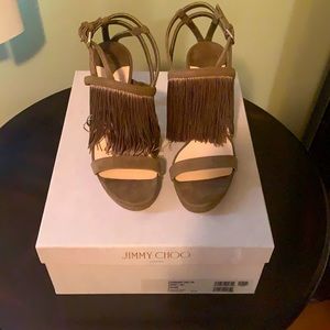 Brand new never worn size 34 jimmy choo Farrah sandal olive suede with fringe