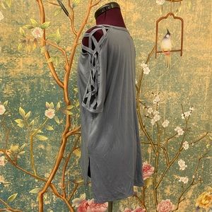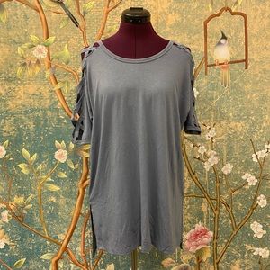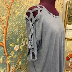 NWOT Zenana Premium Grey Criss Cross Sleeve Top