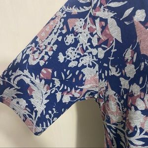 LULAROE NWT abstract floral fit & flare perfect tee. Size M. Polyester knit. Longer length. Very flattering. Gray blue lavender print.