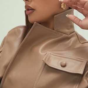 Tan Vegan Leather Belted Jacket 🧥 Dress