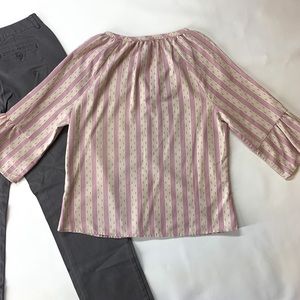 Bit & Bridle Western V Neck Striped Bell Sleeve Blouse