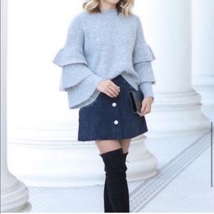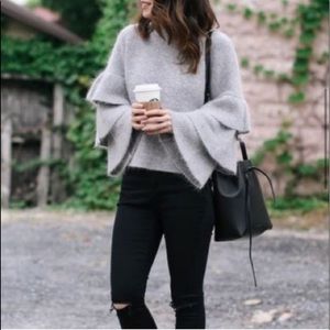 Endless Rose crewneck sweater with adorable ruffled bell sleeves. This sweater has the feel of cashmere thick and luxurious.