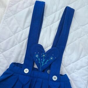 ⭒ 6-18M Unique Embroidered Vibrant Navy Blue Adjustable Heart Suspender Skirt ⭒