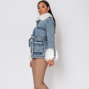 jeans jacket, denim jacket, faux fur collar and cuff jacket, faux fur collar and cuff jeans jacket, faux fur collar and cuff denim jacket, shearling lined jacket, shearling lined jeans jacket, shearling lined denim jacket, shearling faux fur collar and cuff jacket, winter jacket, fall jacket, stylish jacket, long sleeve jacket, long sleeve jeans jacket, long sleeve denim jacket, blue jacket, blue jeans jacket, blue denim jacket, blue faux fur collar and cuff jacket, shearling jacket, fall fashion, fall style, fall outfit, winter fashion, winter outfit, winter style, streetwear, streetstyle, streetfashion, holiday gift, holiday gift for her, Christmas gift, Christmas gift for her, fur jacket, faux fur jacket, fur collar jacket, faux fur collar jacket, warm jacket, vacation outfit, summer outfit, summer style, spring outfit, spring style, fur cuff jacket, faux fur cuff jacket