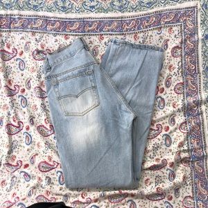 •Style: 5 pocket with bronze zipper and studs; high rise