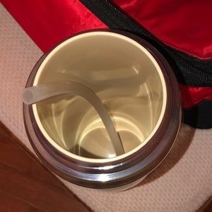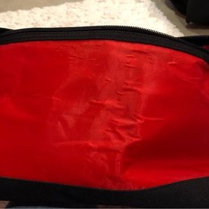 Coca Cola insulated cooler with outside zip pocket & removable strap.