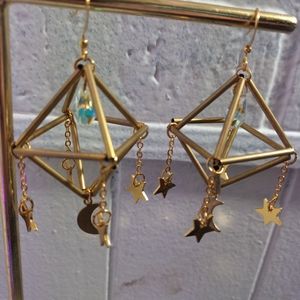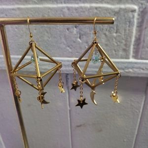 This is a pair of goldtone geometric earrings with stars and a crecent moon. All items are negotiable so please feel free to make an offer or add to a bundle for a customized discount.