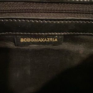 Bcbgmaxzria black clutch hand bag with real cowhide fur and lizard embossing on the leather .Working lock with 2 keys, 7 inch handle is removable. Lots of room on inside. 2 tags inside. Original dust bag. 7 x 12.25 x2 inches. The inside is divided into three sections with a zipper section in the middle.There’s a flat pocket that zips on the side with label, 2 slot pockets on side There’s no signs of wear on the leather or on the inside. There’s some scratches on the 2 tone clasp. A very sexy !!Take your western wear to the next level, or that little black dress.