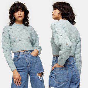 Topshop Blue Stitch Cropped Knitted Women's Pullover Sweater Size: Medium NWOT