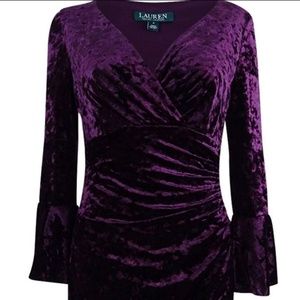 Classy and beautiful dark purple velvet dress from Ralph Lauren. Very elegant. Dressy enough for any wedding or cocktail party but classic enough to wear to work. Gorgeous color. Very flattering cut, looks great on all body types!