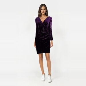 RALPH LAUREN dark purple velvet faux wrap cocktail dress NWT