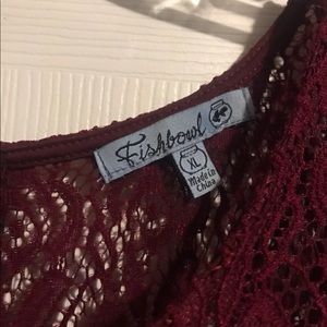 Fishbowl burgundy lace dress size xl. Black accent zipper detail on back. Only worn once for a couple of hours to a formal event in great condition