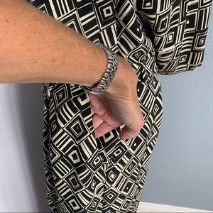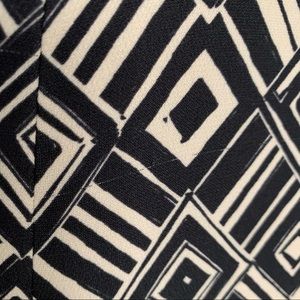 Note: there are a few minor “pulls” typical of 100% silk clothing. Very difficult to see because of the overall geometric pattern. Example shown in last photo. Does not affect wear.