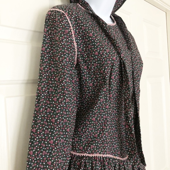 Handmade Prairie Long Dress Amish Mennonite Calico Print L/S Modest w Bonnet