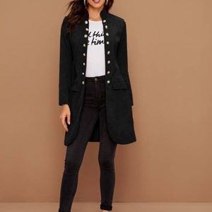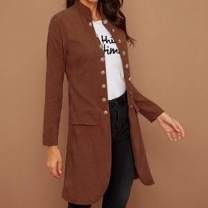 Dusty blue Button Detail Open Front Corduroy Jacket Shacket