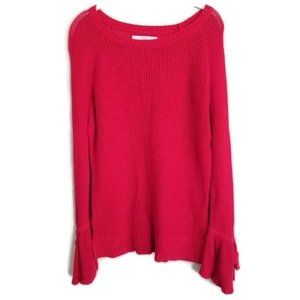 LOFT RED PULLOVER LONG BELL SLEEVE SWEATER