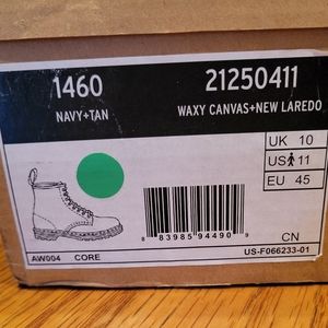 Presenting the rare 1460 "New Laredo". This 2016 boot comes in Navy Blue canvas (quarters&toes) over tanned leather (tongues& spines & pull tags) to give that rugged leather & denim look. Very little wear time at all on this black DMS sole with black welt stitching. The perfect doc for your cowboy or roughneck in your life. Uk10/Us11/W12