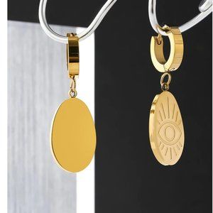 NEW 18K Gold Plated Eye Oval Pendant Oval Round Huggie Hoop Earrings