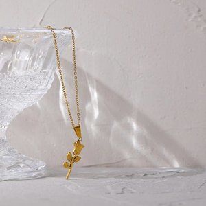 New 18K Gold Plated Rose Flower Leaf Necklace