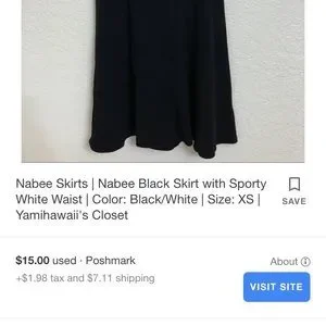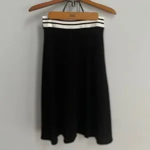 Nabee Stretchy and comfortable black skirt with white striped trim at waist. Material is super soft mesh material. Casual and somewhat sporty feminine vibe.