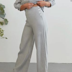 The Calla Pants are an elevated go-to piece intended for everyday wear. These flattering linen pants are lightweight yet maintain their shape over time. They sit high on the waist and fall to a relaxed wide-leg silhouette. Complete with 4 shell buttons at the hip. A perfect companion to our Pansy Top or Buttercup Top.