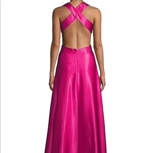 Sheen gown with a cutout bodice, open back and impactful high-low hem.