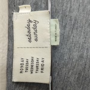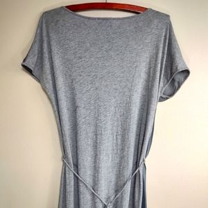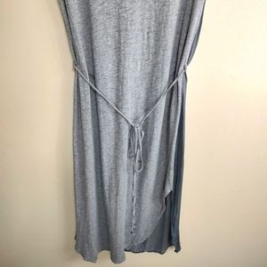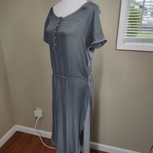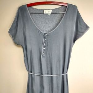 Anthropologie Saturday Sunday mixed media maxi dress. Beautiful silvery gray 100% viscose fabric in the front and soft 100% cotton in the back. Removable tie around the waist to adjust to your shape. Opalescent buttons down the front. Subtle side splits at the bottom. condition. Size Small. Measurements available upon request.
