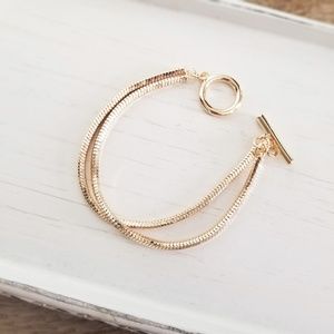 Last1️⃣ Double Snake Chain Toggle Bracelet 18K Gold Plate Boho Trendy Jewelry
