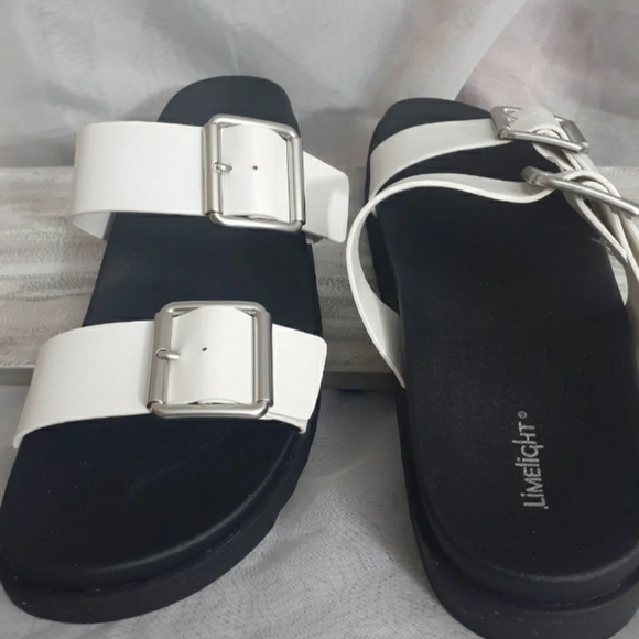 Super cute! Women's white Silverstone Buckle size 9 1/2 Women's sandals, new! They look very comfortable & feel well made, I ordered wrong size or I'd be keeping these. Will ship out Fast and safe! Thank you! Limelight is the brand.
