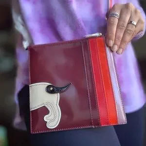 A charming Dachshund will follow you around on this playful crossbody bag in an ombré-inspired design and sized for holding absolute essentials.