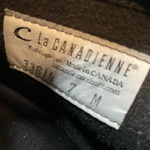 La Canadienne Oliver Waterproof Suede Bootie Black. Style 33814. Waterproof Italian suede La Canadienne ankle boot has soft & breathable microfiber linings with cushioned memory foam footbed for added support. Made in Canada. Inside zipper, rounded almond toe. Perfect for winter, snow, fall, autumn with waterproofed suede.