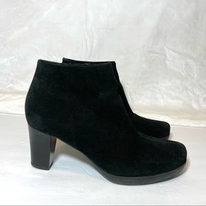 La Canadienne Oliver Waterproof Suede Bootie Black Ankle Boots Stacked Heel 7