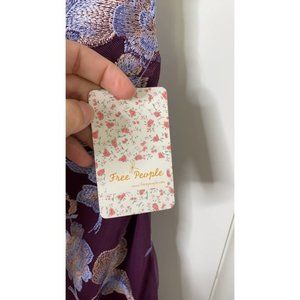 Free People Rosalie Embroidered Mini Dress Purple One Shoulder 3/4 Sleeve. New with Tag!