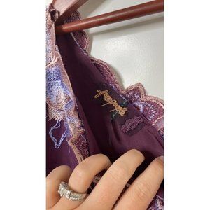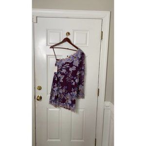 Free People Rosalie Embroidered Mini Dress Purple One Shoulder 3/4 Sleeve